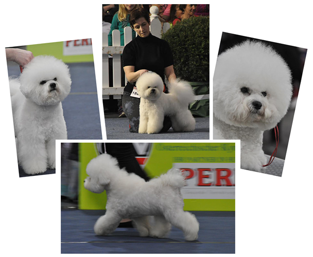 What a great day in Austria!. Bandit, Minibelle Top Dog Juvenile Delinquent, won CACA, CACIB, BEST OF BREED and finally 5th place in the GROUP! He is now International and Austrian Champion!